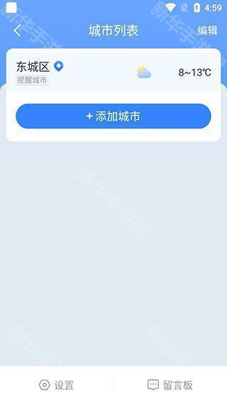 2.轻松添加城市,可以定位或手动选择,并在主页上快速查看新的城市天气。