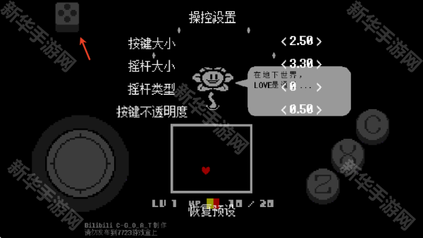 6、最后可以点击左上角的骰子来设置摇杆按键的大小和透明度。