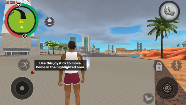 2、游戏内如图,移动摇杆角色将会进行奔跑。