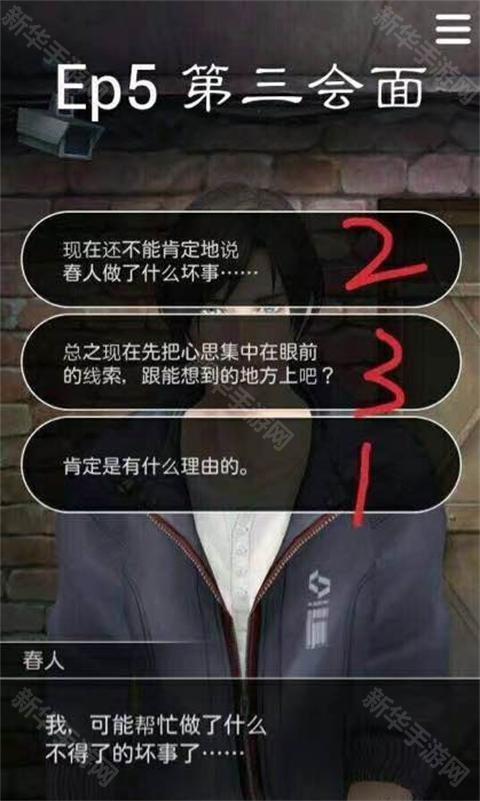 1、从第五章开始玩,按图片选项选择你想要的结局(比如选项后面红色数字为3的,代表选择这个选项会产生结局三)这三次对话都很重要。