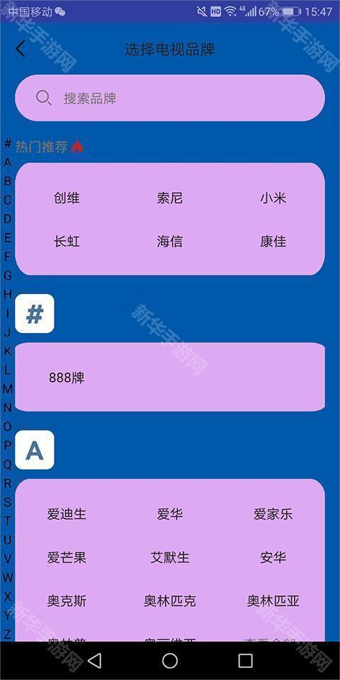 2、人性化智能搜索遥控器,输入各个电视品牌品牌旗下的红外手机,没有红外功能的手机也可使用;