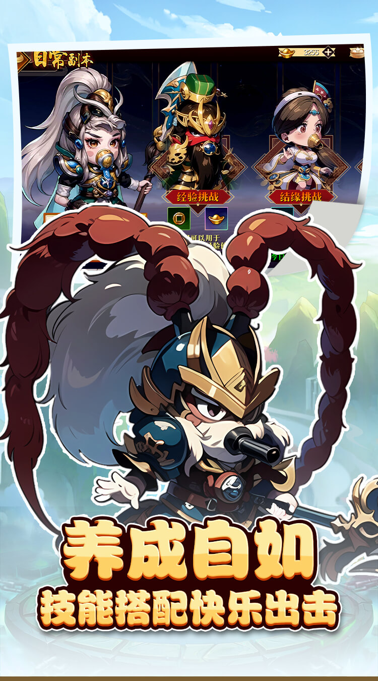 游戏的玩法非常独特,让卡牌和三国结合起来,升级自己的角色,收获素材,让自己变得更加强大,战胜敌人获得游戏的胜利,还可以升级技能并且进行进化等等,喜欢的快来试试看吧。