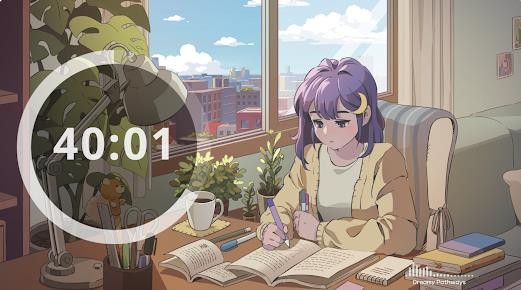 2.设置持续时间并启动番茄定时器以开始聚焦,艺术风格温暖而疗愈,具有强烈的陪伴感,适合长期使用。
