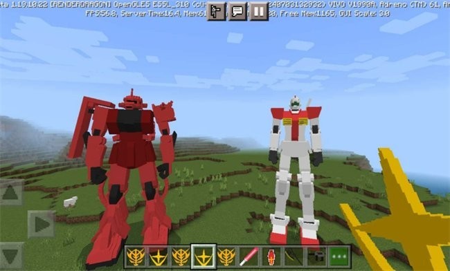 【我的世界高达mod手机版】这款游戏是沙盒冒险类型的游戏,游戏由“Mojang”工作室出品,这个版本中加入了动漫“高达”的模组,让玩家可以驾驶者巨型机甲高达,在世界中破坏、攻击和冒险,甚至可以在空中飞行,驾驶体验与手机操作高度兼容,具有移动方向的虚拟操纵杆控制、按键触发的喷气式飞机飞行,以及可以加入联机模式,与其他玩家进行机甲战斗刺激体验。