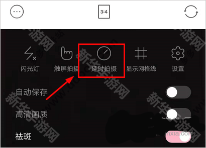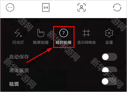 1、在相机左上角的设置功能界面可以看到”延时拍摄“功能,点击一下即可。