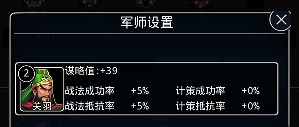 玩家为队伍中设置军师可以提高在战斗中可使用的谋略值,并对战法及计策的效果命中有一定的影响。智力值200以上的武将才可被任命为军师。武将可以通过剧情的发展获得,也可以在商场中通过招募功能获得更多的武将。