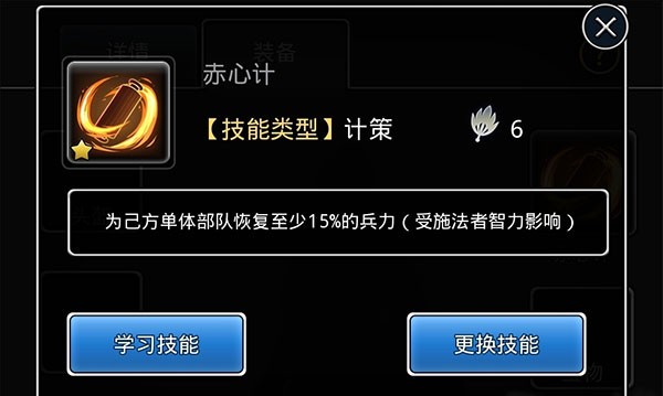 玩家在战斗中进行作战,可以使用普通攻击或是技能,技能的使用需消耗相应的谋略值。技能除了对敌攻击的技能外还有着对队员产生增益作用的技能,玩家在释放技能前得先看清技能描述。