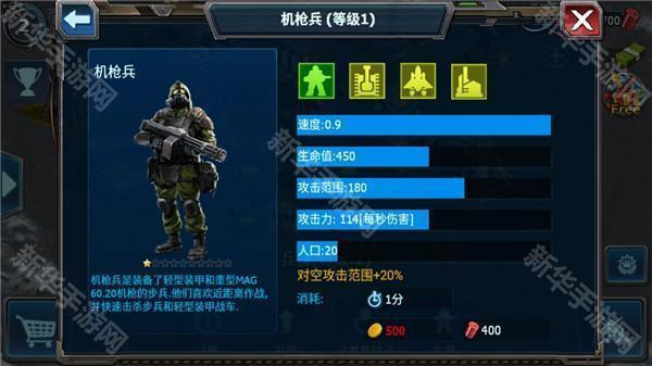 机枪兵,这是一个前期战斗力完爆步兵的兵种,并且消耗资源较少,性价比超高。在游戏前期可以当作地面主力之一,中后期放在机枪碉堡里,你会看到他完美的战斗力!工程师是一个减少损耗的单位,合理利用,可以让你后期天启坦克场场战斗都无损!不仅在战斗过程中,工程师保证天启坦克等地面机械单位的生命恢复,在你离线以后,他还会默默地修理你的受伤坦克,等到你下一次上线以后,你的地面机械单位又会是满血满状态参与战斗,很多时候,一个工程师的价值远远大于几辆天启坦克!恐怖机器人,这是个游戏后期对空能力相当可观的单位,无论是防御还是进攻,它的存在对步兵对空中都是一大杀手!