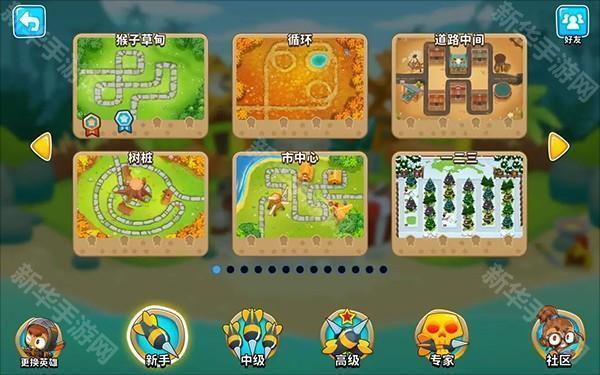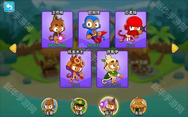 ①游戏前期尝试不同的猴子,提升猴子的经验值解锁猴子的技能;尝试不同的地图,拿下不同难度的首胜奖励积攒猴币