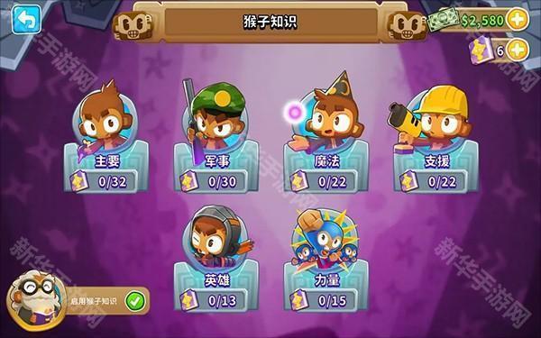 ②游玩一段时间后,大致熟悉流程以及不同猴子特性后,花费猴币不断去加知识点增加整体战斗力,有多于的猴币可以买一个自己喜欢的英雄配合猴子塔