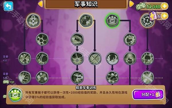 2、选中需要升级的猴子,消耗经验值解锁技能;(长按技能图标查看技能介绍)