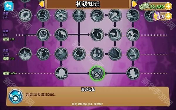 玩初级猴偏多时,朝着【更多现金】去加点,两侧开始依次向下,共需15点知识点,以及4500猴币;点出【更多现金】后每局开局多200金币以及一个免费的飞镖猴,困难模式相当于开局多415金币,对局前期更容易稳定节奏。