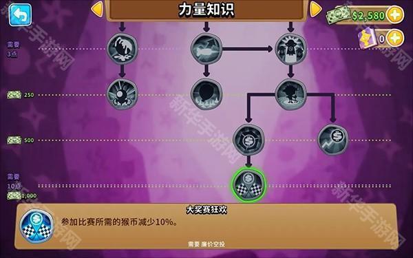 拥有3点知识点后,优先把【更多猴币】点出来。猴币可以买英雄、可以续关、可以买力量,并且后期加点也需要大量猴币。魔法猴的其它知识点玩哪个点哪个就行,或者点完【更多猴币】之后,先去点别的类别知识。