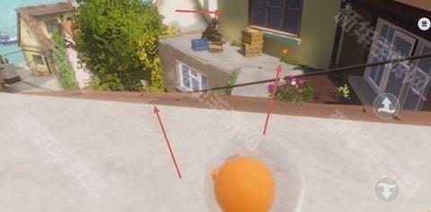 来到了第二个箭头标点的阳台那,你会发现前面有个管道,往管道上走,在走上去的过程中要小心旁边的屋檐,有时候你一个不小心就会蹭到他,从而导致游戏失败。