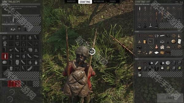 3、受伤时会不断流血,请使用破布、绷带来止血,止血后,血量会慢慢恢复,状态区SICKNESSES为疾病区块,角色若有任何疾病都会出现于此。