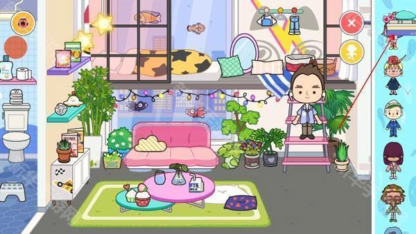 将人物放进房间后,即可点击购买的家具用品,装修房子。