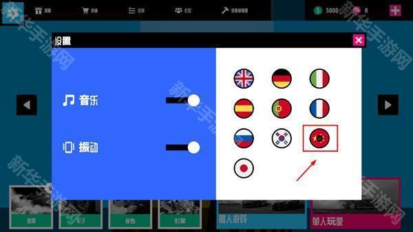 1、首先由于打开游戏是默认英文,所以要切换中文,点击左上角设置按钮;