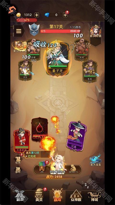 1.游戏中的英雄被分为多个神话系统,收集和培养以创建专属的神话团队。