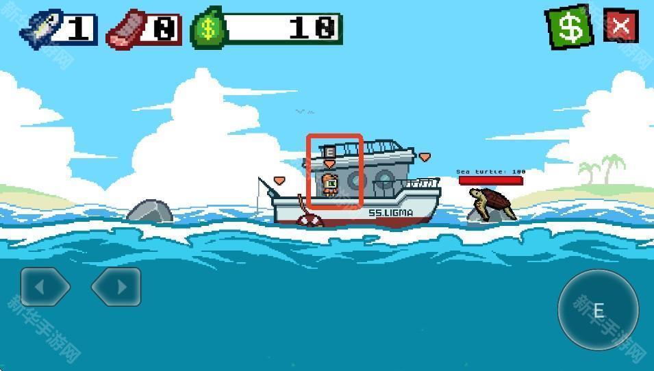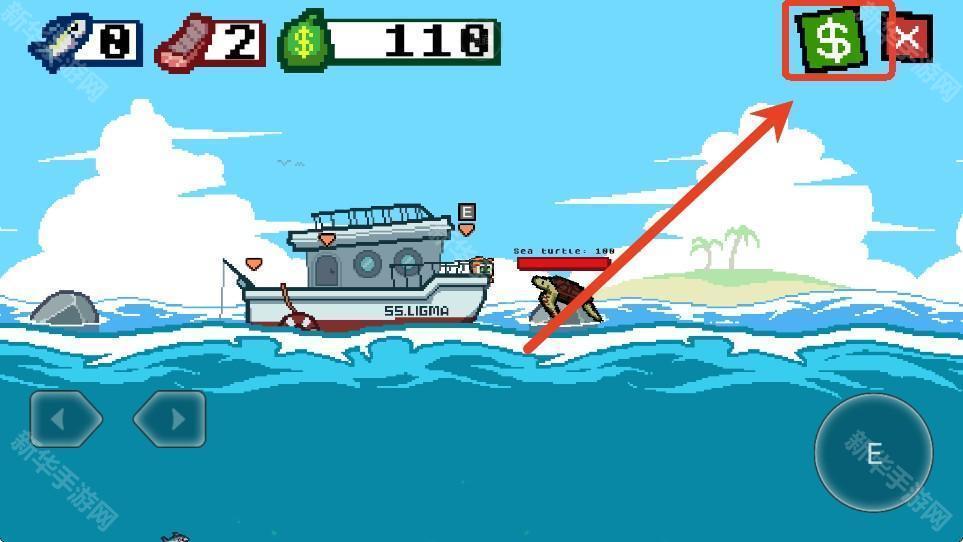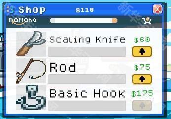 6、使用右上角的按钮进入商店购买升级您的刀,钓鱼线,和鱼钩。