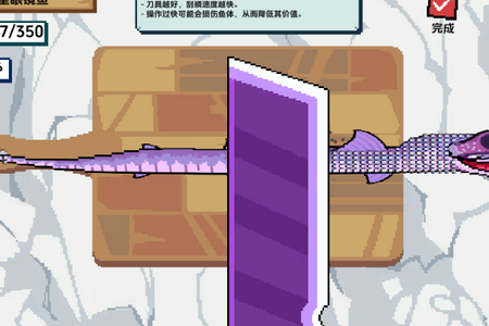 4、接着,我们根据系统要求去完成挂鱼鳞任务,我们需要从左至右滑动刮鱼鳞,刀具越好,刮鳞速度越快。