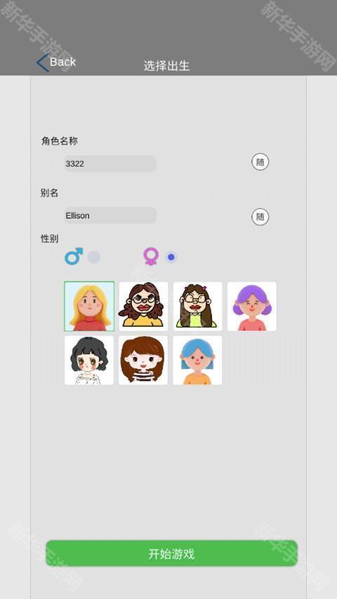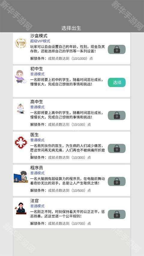 2.初入先选择出生,若成就点数不足,可从初中开启人生,接着创建角色,为角色取名,选定性别与形象,正式踏入世界。
