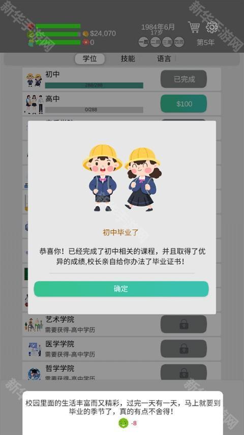 1、对于这款游戏,选择从初中学历开始,然后开局就是学习,没钱了就找父母要,可能不会给太多。