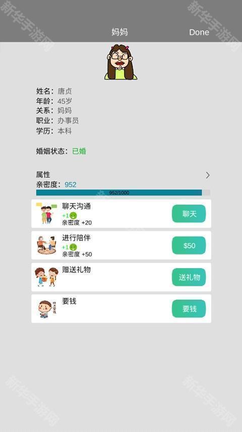 游戏采用了独特的艺术设计手法,每个场景都精心打磨,每个道具都经过精心排布,玩家在游戏中不仅仅能够享受游戏带来的愉悦,还能品味到艺术的美感,一切都是那么自由。在开始阶段,您可以开始新的旅程;但可能金额有限,建议在要钱前先通过聊天等方式提升与父母的亲密度,尽情探索,尽享闲情逸致,其中还包含许多不同的旅程,若选择初中学历开局,初期重点便是学习,资金短缺时可向父母索要