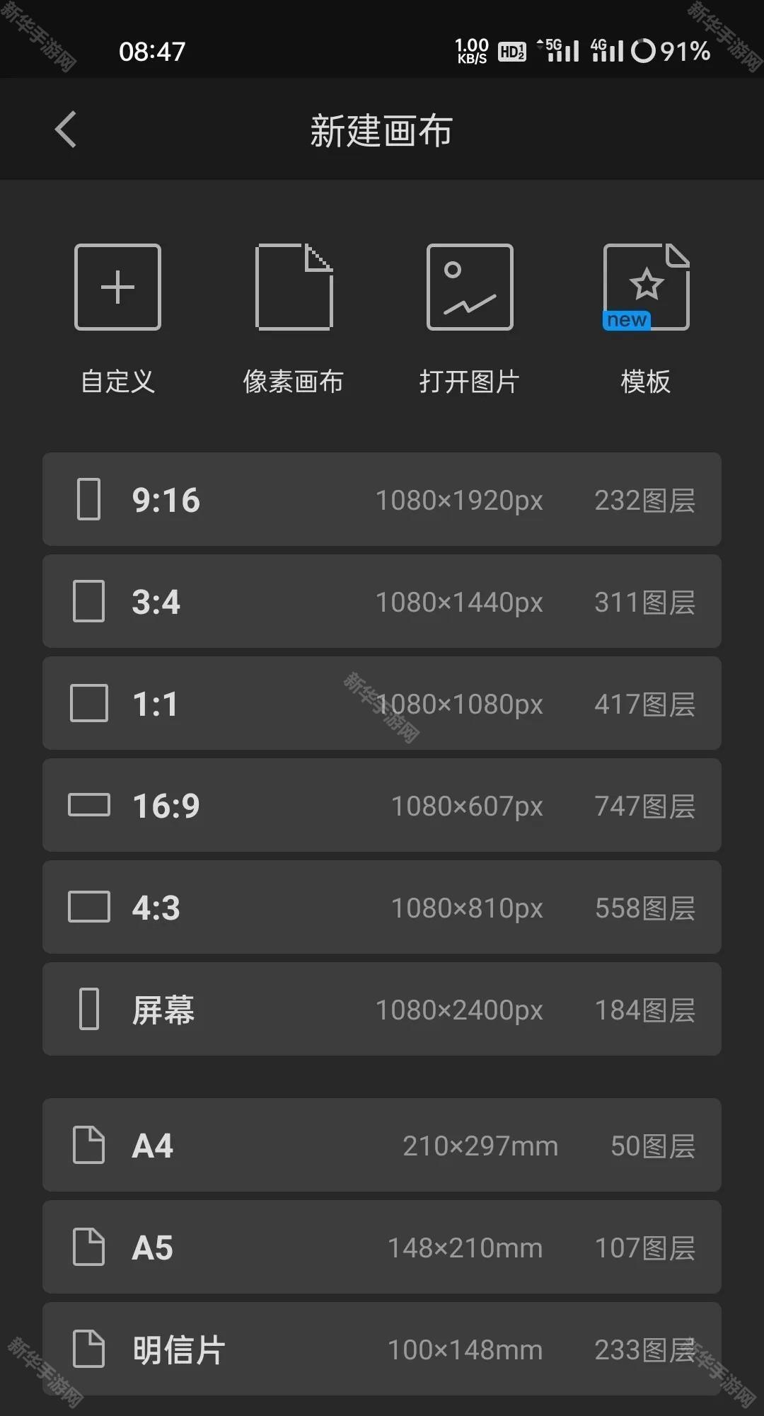 3.在普通手机或平板设备上,常见的画布尺寸下,图层上限可能在几十到几百层不等