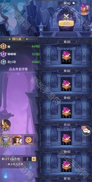 爬塔玩法,首通可得武灵丹,扫荡能得铜钱和武将经验。每10层能获得一份通关奖励,如武将碎片、高级诏令、橙装、红装等。