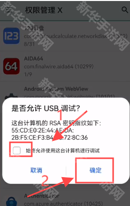 1、打开权限管理时,系统会提示需要开启ADB调试功能