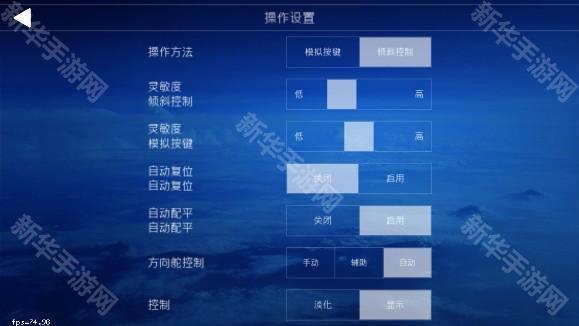 在驾驶飞机之前,我们可提前设定飞行技巧、飞机型号、飞行地点、航线设定以及环境等各项游戏参数