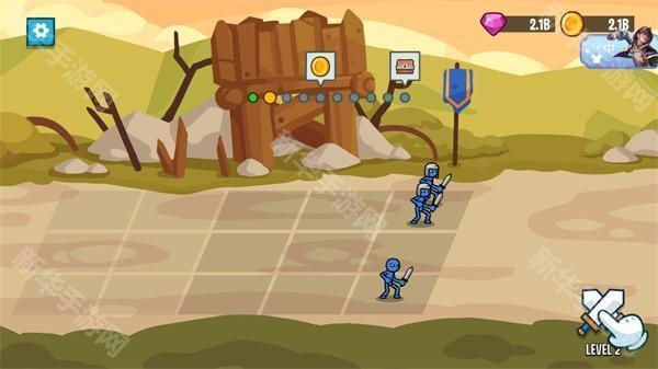 3、收集并合并您的军团火柴人军队,带领他们取得胜利,策略对抗,游戏强调策略性。