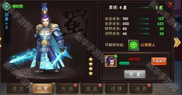 武将升星能够解锁武将的技能,提升武将战力。武将星级提升后可以解锁更多被动技能。在战斗中,武将的被动技能比对手多出1~2个,效果是很可观的!