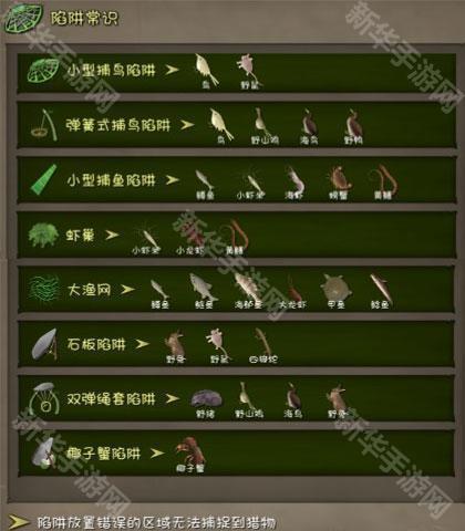先建好房子,建议不要靠近湖,不然茭白不刷新,到二三天的时候就收集陷阱材料,大约三个小型捕鸟陷阱,四到五个石板陷阱抓兔(虽然老鼠居多),三个石板放一起,捕抓几率大大提高。再后面就做捕鹿陷阱,建议放在南方水塘边的草坪上,靠近着放两个以上。捕鱼陷阱少做,亏。