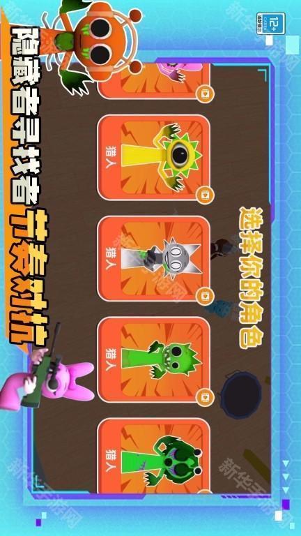 3、提供多种角色选择,包括外形和技能各异的猎人等,你可以挑选自己喜欢的角色来进行躲藏或寻找的游戏。