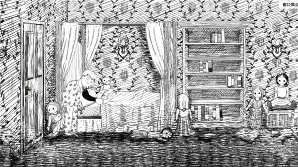 1、游戏黑白的手绘画风看着很简单,但在细节上的刻画配上恐怖的音效能够营造出让人毛骨悚然的氛围。