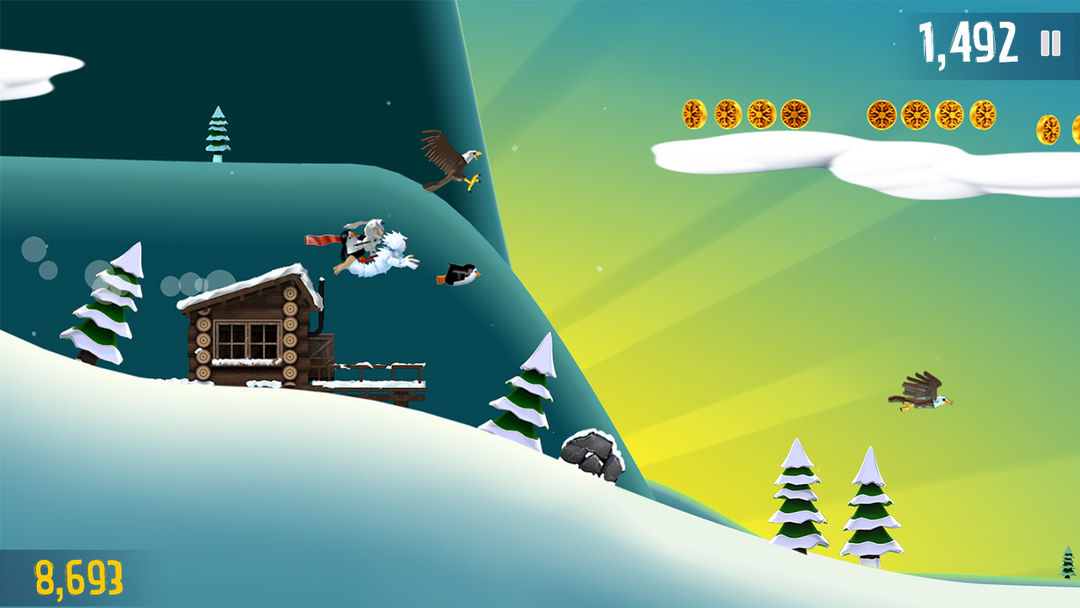 游戏在细节之处的打磨也十分到位,能看出来很多地方都花了不少心思,为了给玩家带来更好的游戏感受。因为一不小心摔倒了。雪狼就很容易丢失,这样积累5000米就比较慢了。要注意不要在雪崩要来的时候后空翻,这个时候最好采用自有下坠加速方式,平稳落地最重要。使用雪狼的时候,如果还搭载了雪人和企鹅的话,那么就不要后空翻了,因为很可能就摔倒了。