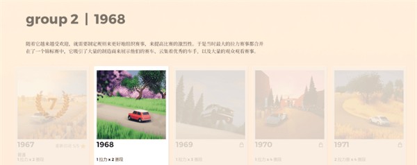 2、提供了多个赛道和车辆供玩家选择,包括60年代的标志性赛道和具有挑战性的B组赛道。