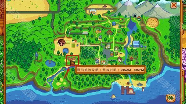 3、那么接下来就要在地图上找到在玛尔妮农场了。位置:自家农场右下侧一点点。