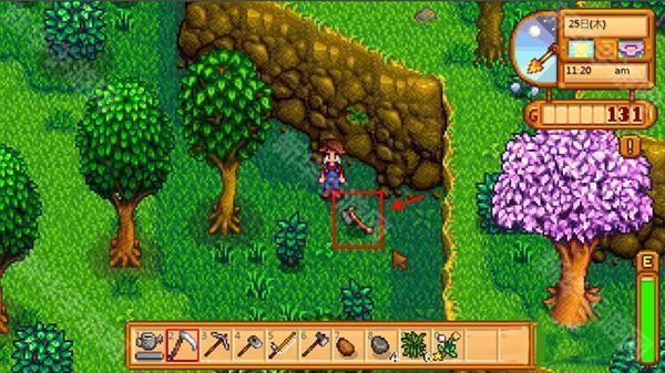 4、斧头其实是在玛尔妮农场的南边。下图已经标明位置了,箭头是行走方向。