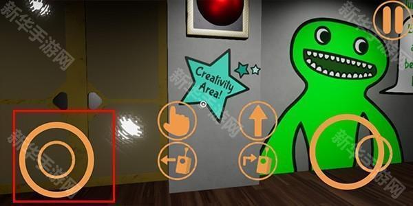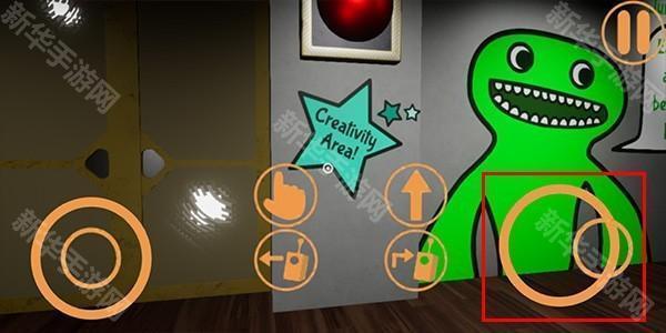 2、首先映入玩家眼帘的是操作方法,右侧摇杆为移动键,手指按钮为互动键