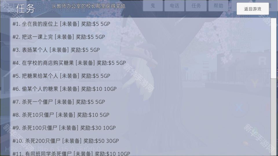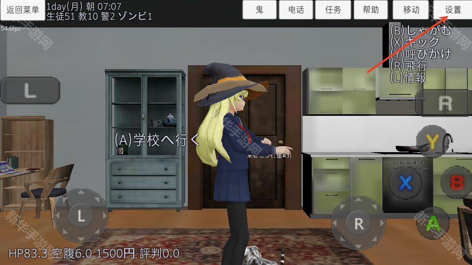 3、四到五个带手柄的虚拟按钮可以执行复杂的动作,并在校园里展开冒险的横冲直撞。
