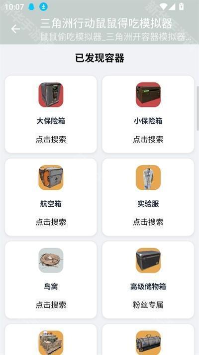 鼠鼠得吃模拟器是一款三角洲的开箱同人游戏,在这款游戏之中玩家将作为一名鼠鼠玩家,通过不断的搜索来获取不同的装备,每一个装备都有着不同的品质,你能得到什么样的装备比较考验的就是你的运气了。相比起原版三角洲游戏,这款游戏想要开出红色的物品的概率会更高一点,轻轻松松就能享受到各种稀有道具带给你的乐趣,感兴趣的玩家不妨前来本站下载体验畅玩吧!