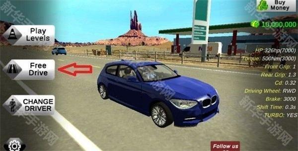 首先第一步,我们点击游戏的“free drive”按钮,翻译过来就是“自由驾驶”的意思。