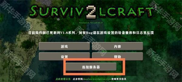 1、在Survivalcraft2中文版游戏主页面中,我们点击连接服务器选项,打开服务器列表
