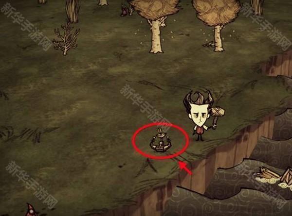 4、接下来玩家在树林中寻找生命树,用斧子砍倒得到活木。注意,饥荒游戏里的活木不是那么好找的,玩家可以用另外一种方法来获得活木:它就是击败树人。