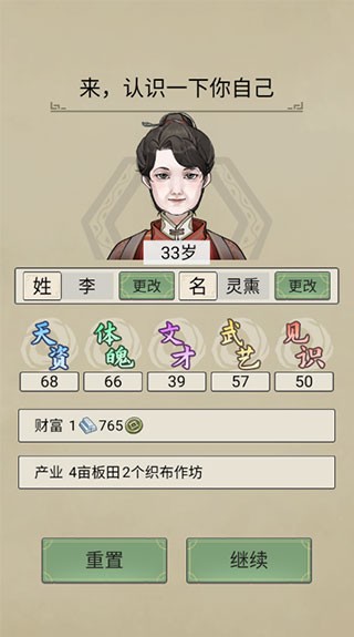 1、打开游戏后,开局你可以选择自己的家世背景,可以一直重置来刷到你想要的属性。