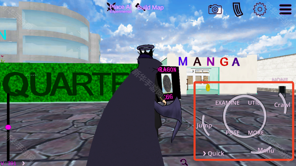 3、右下角有各种技能,例如短跑,跳跃,爬行等等,玩家可以随意选择。
