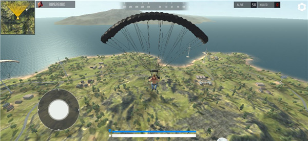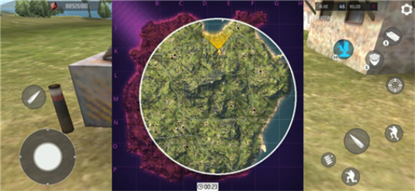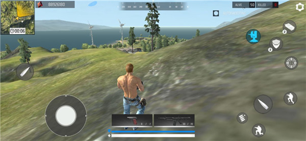 7、下来之后控制虚拟键让人物进行移动,并拾取地图的枪械武器来消灭其他对手;