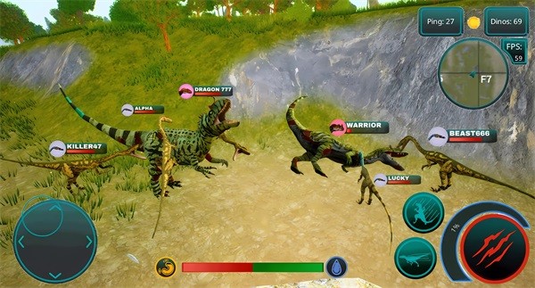 3、食物提取,如果恐龙是掠食者,那么你需要杀死其他玩家的恐龙才能得到自己的肉,如果你是草食动物,那么食物就更容易了,你需要特殊的蕨类植物,你可以得到足够的他们!地图上任意湖泊、水库都可以饮用。